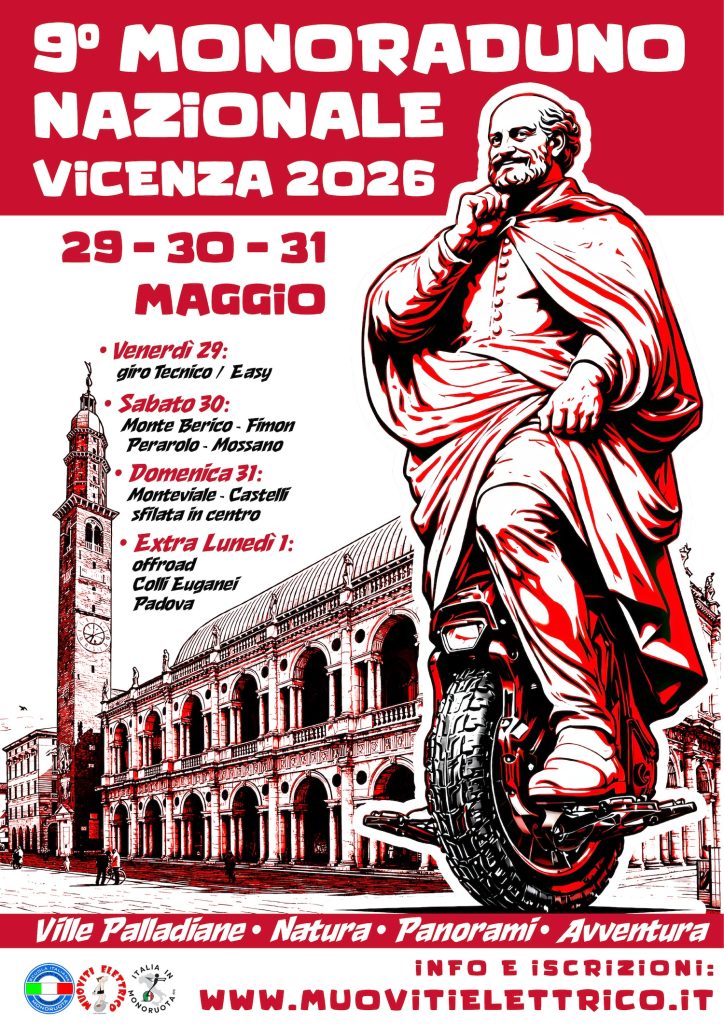 Dal 29 al 31 maggio 2026 Vicenza ospiterà il Monoraduno nazionale, un appuntamento molto atteso per tutta la community della monoruota elettrica.